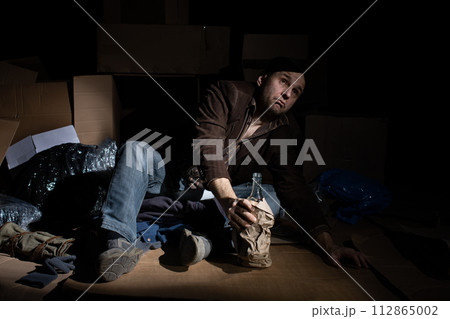 A middle-aged homeless man became alcoholic because of his situation.