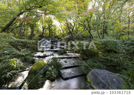 姫路・好古園 日本庭園を流れる緩やかな滝 / Koko-en, Japan