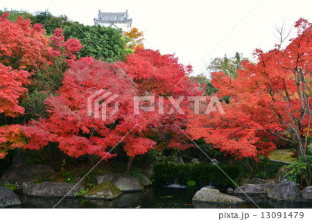 日本の美しい庭 姫路城西御屋敷跡庭園好古園の紅葉 姫路公園 姫路城内にある日本庭園 庭木 盆栽
