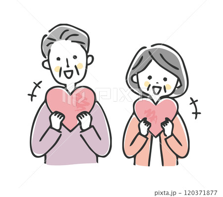 歳の差があるカップル(男性が年上) 幸せそうに愛し合う二人 コミカルな手書きの人物