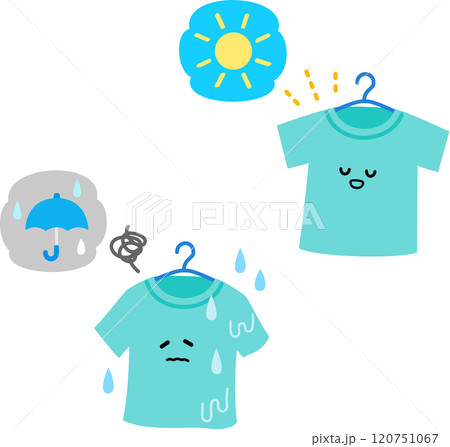 晴天で乾いた洗濯物と雨天で乾かない洗濯物