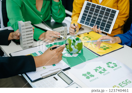 Green business company and Solar Energy Environment city Concept. business team people planning