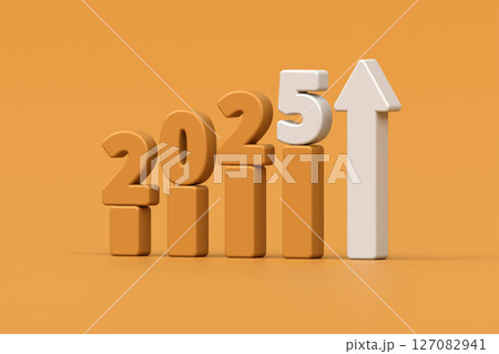 2025 growth concept with numbers forming rising bar chart and upward arrow symbolizing success on orange background, progress, and future achievements, 3d rendering