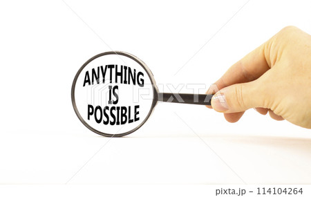 Anything is possible symbol. Concept words Anything is possible in beautiful magnifying glass. Beautiful white table white background. Businessman hand. Business anything possible concept. Copy space.