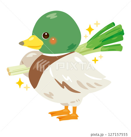 長ネギを片手に担いだ鴨のイラスト