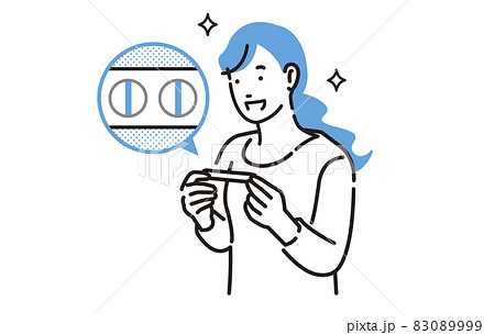 イラスト素材:女性、妊娠検査の判定をチェックする