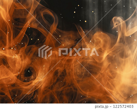 An abstract smoky background with swirling orange wisps and scattered glowing dots