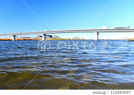 千葉県市川市妙典の江戸川を渡る水管橋の風景