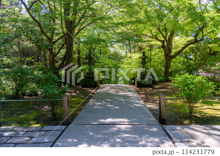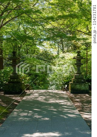 鎌倉 妙本寺の二天門から望む参道の石灯籠