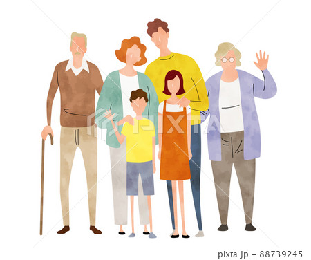 ベクターイラスト素材:家族、祖父母、3世代