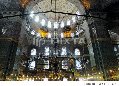 トルコ イスタンブール イエニ・ジヤーミイ 礼拝堂のドームの天井
