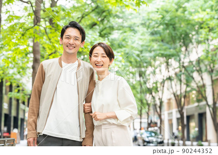 デートをする笑顔のカップル(お出かけ・外出・買い物・夫婦)