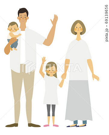 赤ちゃんのいる4人家族の冬の装いイラスト