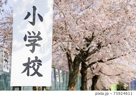 教育イメージ 校庭の周りの桜 田舎の小学校