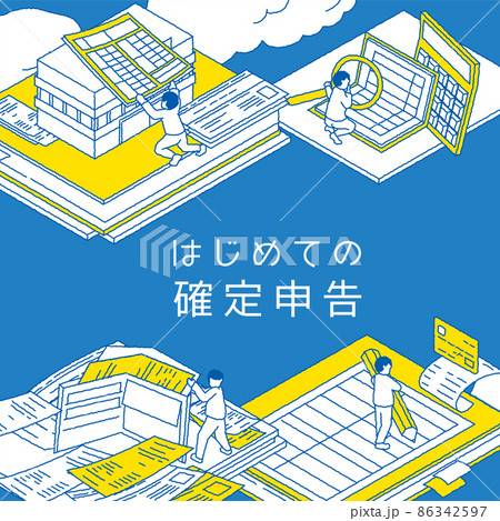 確定申告をする人のアイソメトリック図