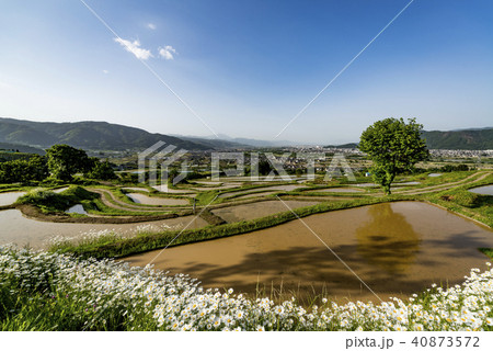 春の姨捨の棚田