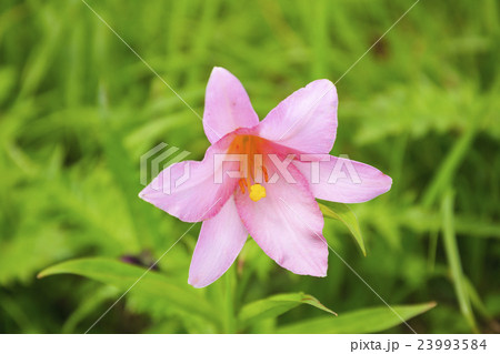 福島県南会津町高清水自然公園の草原に咲くヒメサユリの一輪花 Ver2