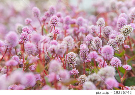 自然 植物 ヒメツルソバ、道ばたにピンクのボンボンのような花が咲いていました。観賞用で移入されたようですが丈夫なたちであちこちにはびこっているそうです