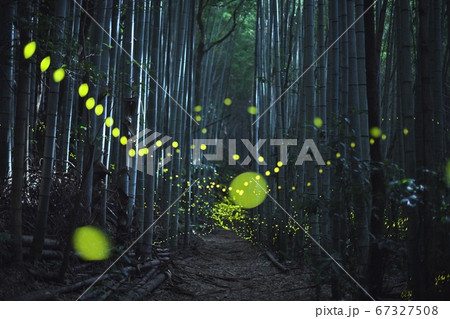 竹林を舞うヒメボタル。夏イメージ。