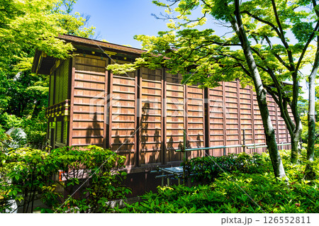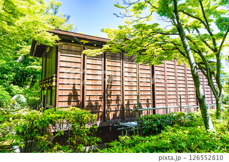 初夏の相楽園の風景 国指定重要文化財の船屋形1 兵庫県神戸市中央区
