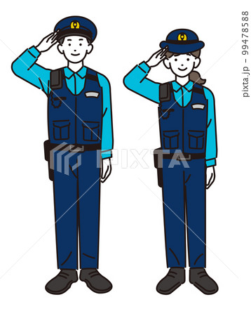 敬礼する警察官の男女