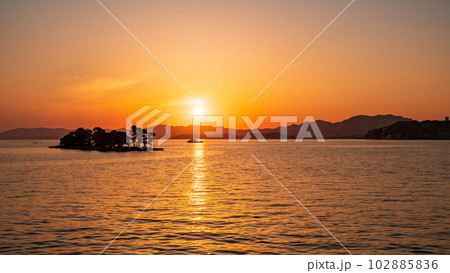 宍道湖の夕焼けと嫁ヶ島の風景 島根県松江市