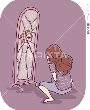Girl Symptom Hate Self On Mirror Illustration