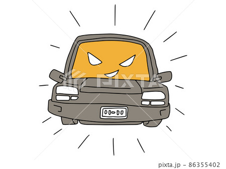 迷惑行為をする車(擬人化)コミカルな手書きの人物 ベクター、線画にシンプルな色つけ