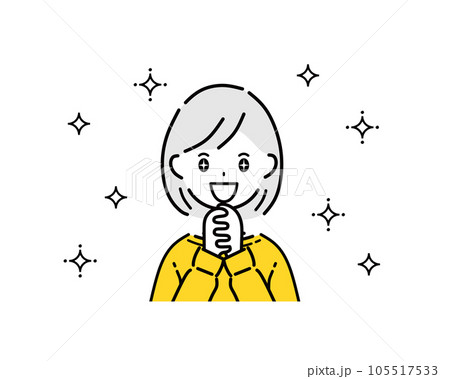 イラスト素材:女性 かわいい 私服 喜ぶ 笑顔