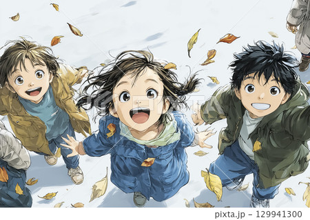 落ち葉の中で元気に遊ぶ子どもたち|秋の公園で笑顔あふれる楽しいひととき