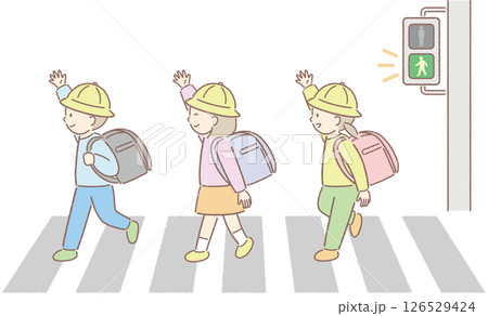 横断歩道で赤信号を待つ子どものイラスト(女子)