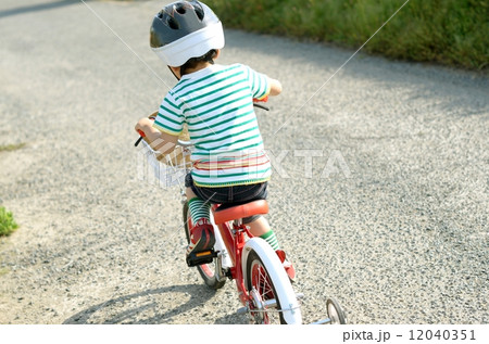ヘルメットを被って自転車に乗る男の子