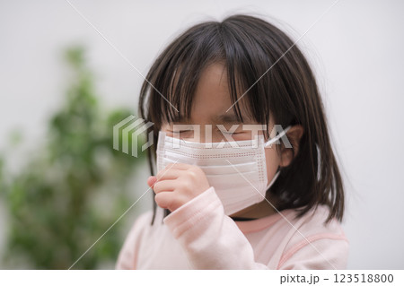 コロナウィルス 新型肺炎 マスクで予防する少女
