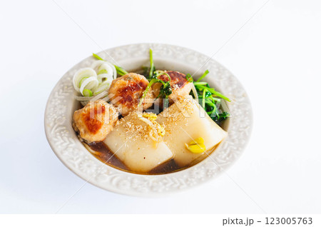 餅入りモヤシと鶏つみれの寄せ鍋風