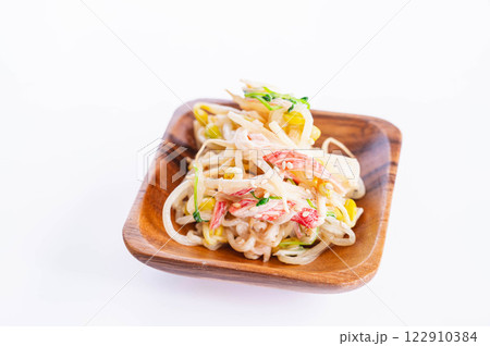 子大豆もやしとカニカマと豆苗のマヨサラダ