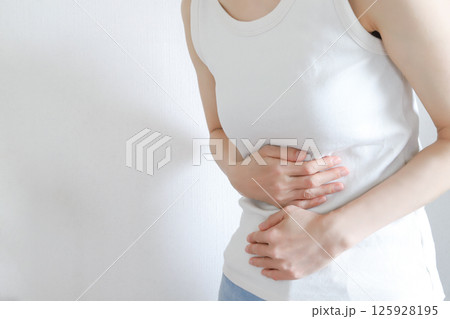 お腹を押さえる女性の腹痛イメージ
