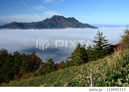 雲海に浮かぶ石鎚山(愛媛県西条市UFOライン沿い 子持権現)