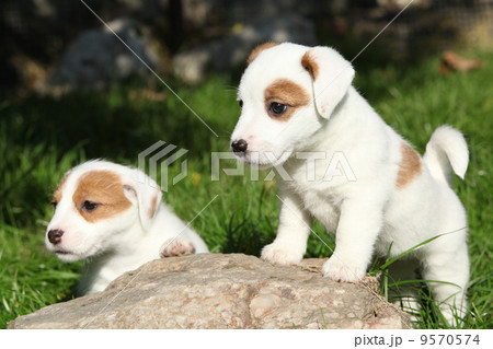 Gorgeous puppies of Jack Russell Terrier on some stone
