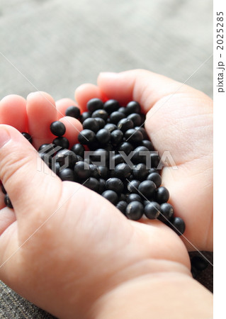 素材としての使用をはじめとした様々に活用できる、北海道産「黒千石大豆」という豆の一粒真俯瞰撮影
