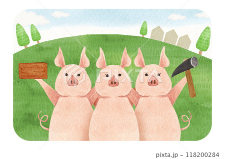 童話 昔話 三びきのこぶた 水彩 イラスト