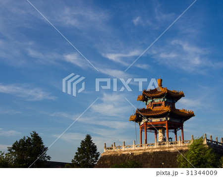 宮廷建築様式「夕焼け・陽射し空を背景に宮廷風景」観光名所:有明の里 泗水孔子公園