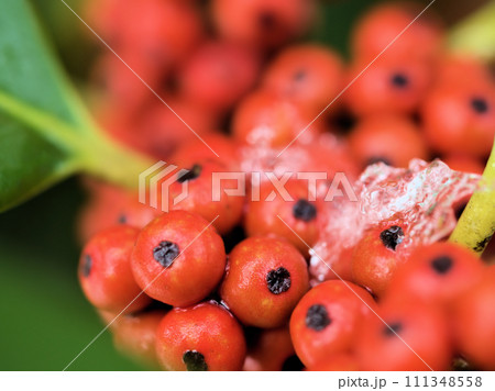 11月に色付いた赤いタラヨウ(多羅葉)の実