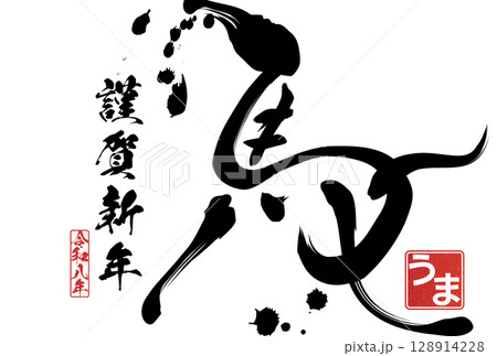 墨絵 埴輪の馬(午 印風)ペン字 あけましておめでとうございます .n