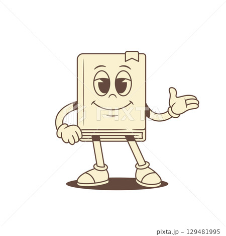 Cute childish book cartoon character showing hand vector illustration