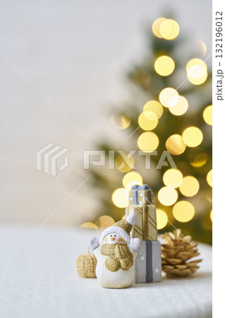 雪だるまの置物とクリスマスツリー クリスマスイメージ