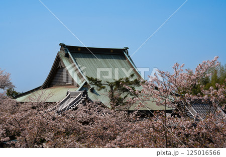 桜とお寺の屋根