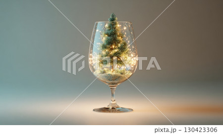 Snowy Landscape with Decorated Christmas Fir Tree and Ornaments