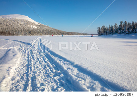 Skiing on a Frozen Lake on a Sunny Winter Day