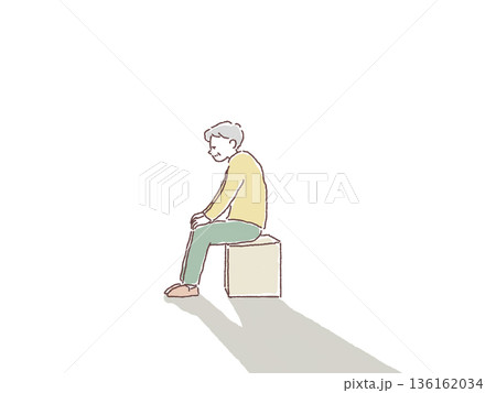 高齢者、老後のイラスト(孤独、不安)、線画、