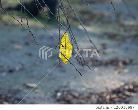 秋の風に揺れる一枚の黄色い葉